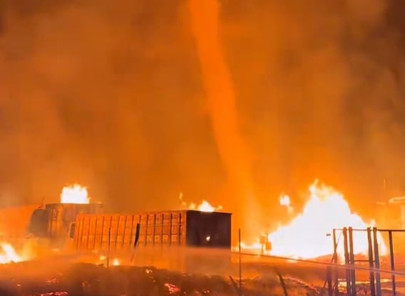 Un impactante tornado de fuego se generó en medio de un incendio en una planta de residuos en Onda, Castellón, España. El fenómeno obligó a evacuar viviendas cercanas y movilizó a diez dotaciones de bomberos.